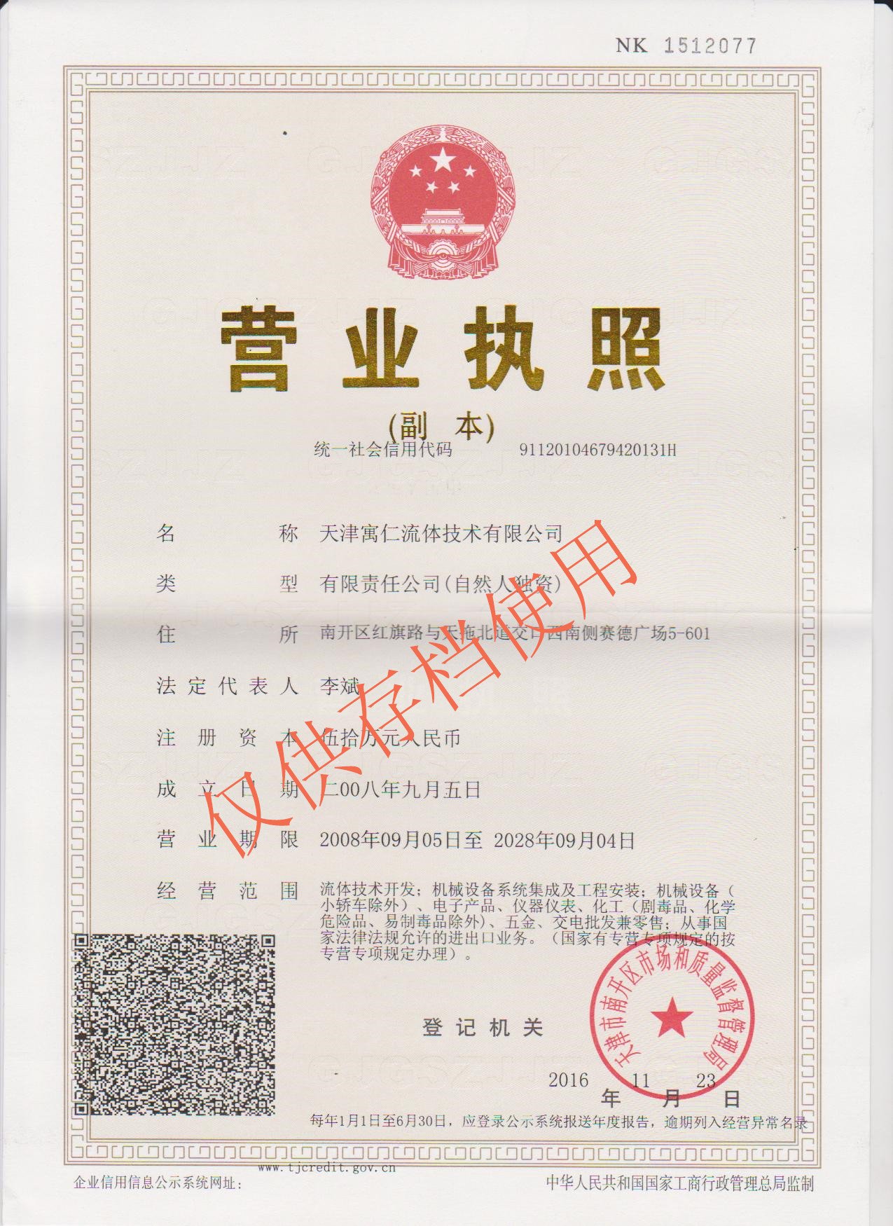 欢迎进入营业执照副本扫描件-天津寓仁流体_天津寓仁流体技术有限公司官网!